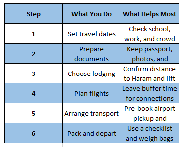 Pilgrims value clear plans, kind support, and honest updates. Therefore, focus on three pillars: timing, access, and care. First, timing means booking with buffers and planning prayer windows. Second, access means rooms with ramps, reliable lifts, and short routes. Third, care means quick help when plans change.